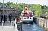 I morgentimene, onsdag, har Vakre Ulefoss pyntet Ulefoss sluse med bjørkeris og norske flagg. Like før klokken halv elleve gjorde kanalbåten Henrik Ibsen sin ankomst, akkompagnert av Gudny Dalen med band.
