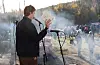 GUTTEN I RØYKEN: Carl Diderik Cappelen var invitert til tenne mila, det vil si fylle åpningen på toppen med glør fra bålet. Dermed var prosessen i gang, og vil ifølge milebrennerne, vare en ukes tid.