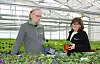 BLOMSTRER: – Det begynner så smått å bli blomster på sommerplantene, konstaterer Gjermund Leikvoll. Her sammen med Iveta, som har jobbet i gartneriet i mange år.