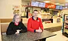 FORNØYDE: – Dette har blitt veldig bra, konstaterer May Britt Ingulstad og Ihor Tytarenko, en av de rundt 10 ansatte ved bensinstasjonen.