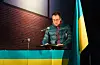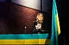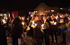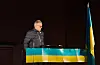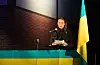Ukrainske flagg og brennende fakler skapte en vakker ramme denne kjølige marskvelden, idet Maria Halland fremførte Nordahl Griegs Til ungdommen (Kringsatt av fiender):