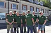 NYTT PROSJEKT: Holla Historielag synes ikke bygget i bakgrunnen får den oppmerksomheten det fortjener. Nå har de gått løs med vaskebøtter og malekost, og vil ha dørene åpne denne sommeren. Fra venstre: Arne Vetle Hansen, Jan Erik Kabbe, Torbjørn Knutsen, Kjell Holte, Helge Fritheim, Gunleik Aspheim, Bjørn Werner Nilsen, Reidar Holte og Rune Vibeto.