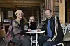 FINPUSSER: En liten tenkepause i riggingen av lokalet før lørdagens konsert i Villa Lunde. Fra venstre Elisabeth De Lunde, Amelia Solberg-Flatland og Carel Flatland.