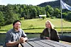 KULTURLANDSKAP: – Vi venter spent på skjøtselsplanen som utarbeides for kulturlandskapet langs kanalen, sier Martin Pedersen og Therese Surdal Lahus. På enga bak dem skal geitene beite denne sommeren.