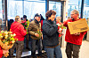 MANGE TOK TUREN: Da Extra Telemarkskanalen åpnet, fredag formiddag, var det mange som tok turen for å se hvordan den nye storbutikken hadde blitt. Her blir de første kundene møtt med blomster fra de ansatte i døra.