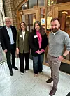 OSLOMØTER: Ordførerne Linda Thorstensen og Siri Blichfeldt Dyrland, har denne uka vært i Oslo og snakket om problemene på Sørlandsbanen. Her traff de blant annet medlemmer av Transport- og kommunikasjonskomiteen. Her med stortingsrepresentantene Jone Blikra og Tom Einar Karlsen.