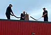 Varaordfører Stig Kjeldal viste at han kunne bruke øks da han med ett velrettet hogg kuttet brannslangen og erklærte «nye» Lunde brannstasjon for åpnet.