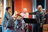 OVERRASKET MED PRIS: Mari Halvorsen fikk prisen Nomes råeste dame, av Nome APs Birgitte Sørdal og Linda Thorstensen.