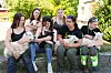 KOSELIG: Maria Nyhaug (foran t.v), Eilin Sørensen, Ingrid Olivia Alcantara, Tuva Rysstad, Kaja Jensen-Rambekk (bak t.h) og Mia Suzanne Halvorsen med søte tåtelam på fanget. Disse kan du møte på Minidyrskun.