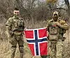BLIR I FELT: Kevin Vinje (til høyre) har ingen ambisjoner om noen fredelig jul i år heller. Her sammen med en medsoldat ved fronten i Ukraina.