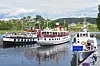 SELGES: Kanalbåten MS Telemarken (helt til høyre) er lagt ut for salg. Bildet er fra et trebåtersmøte ved Lunde sluse.