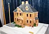 ØNSKER MER AV DETTE: Dette pepperkakehuset var utstilt på biblioteket i Lunde for noen år tilbake. Da var det Fredrik Hilsen som hadde gjort et stort konstruksjonsarbeid hjemme på kjøkkenet, for å lage Gamlebanken i pepperkakedeig. Nå ønsker handelsforeningen å få til en hel pepperkakelandsby.
