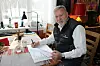 FORBEREDELSE: Her ved kjøkkenbordet, med flott utsikt mot elva, lager Ivar Franck nye quiz-spørsmål.