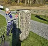 SÅ TYVERIET: Reidun Larsson (91) fra Helgen stoppet tyver fra å få med seg store verdier. Hun gjemte seg bak denne pilaren om natten for å sikre seg detaljer om ugærningene som pågikk utenfor Helgen kirke.