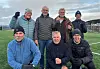 GÅFOTBALLENS FØRSTE SKARE: Disse tok de første stegene på banen da gåfotballen fikk sin debut på Ulefoss.
