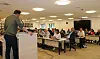 NÅ ER DET ALVOR: Claus Sohn Andersen presenterte forslaget fra et enstemmig kommunestyre. Politikerne var preget av alvoret.