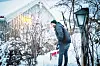 EN UTFORDRING: Med første arrangement 8. februar, kan temperaturen bli en utfordring, sier Helge Strand som her måker vei til Horg kulturhus i egen hage.