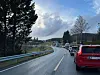 LANG KØ: Det var lang kø i begge retninger mellom Skien og Ulefoss, mandag ettermiddag. En trailer sperret hele riksveien etter å ha fått en sleng på hengeren.