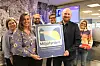 SYNLIG BEVIS: Ordfører Linda Thorstensen og lokalbanksjef Halvard Ajer Thomassen med beviset på at banken er blitt Miljøfyrtårn. Her med ansatte Kari Hørte Jenssen, Sjur Mogstad, Marius Lindgren og Venke Dorholt.